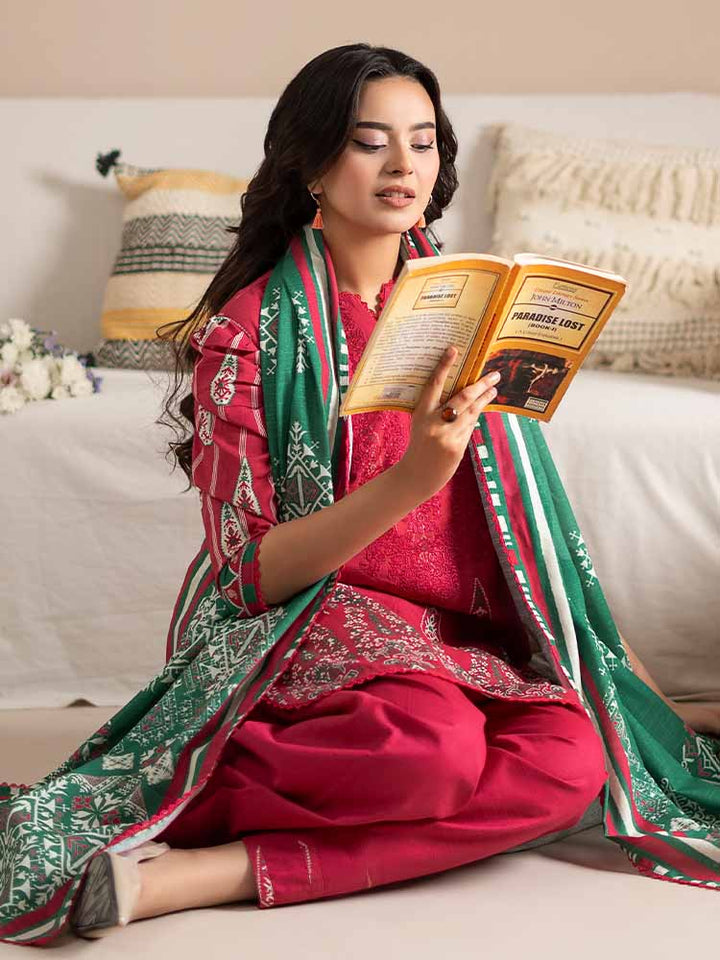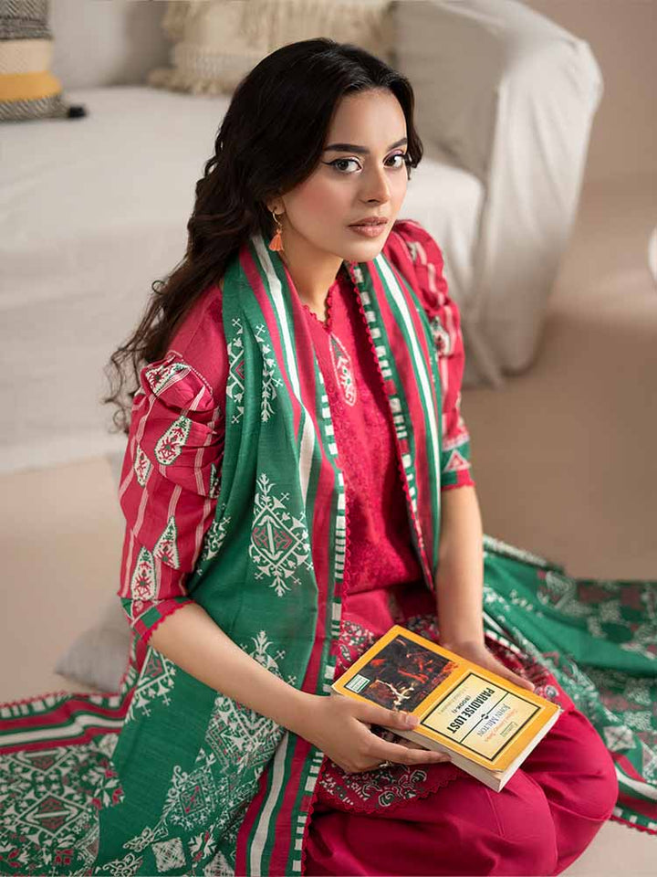 Indulge in the perfect blend of traditional charm and contemporary fashion with our AFSANAY 3-piece unstitched Khaddar suit. This exquisite ensemble is crafted for the modern woman who appreciates fine details and luxurious comfort, making it an ideal choice for festive gatherings, weddings, and special occasions.
