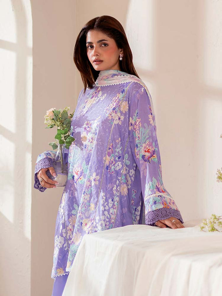 The stunning Digital Printed Lawn Shirt features intricate Chikankari embroidery on the front, creating a beautiful, textured focal point. The back and sleeves continue the vibrant, high-definition digital print, ensuring a cohesive and eye-catching look from every angle.