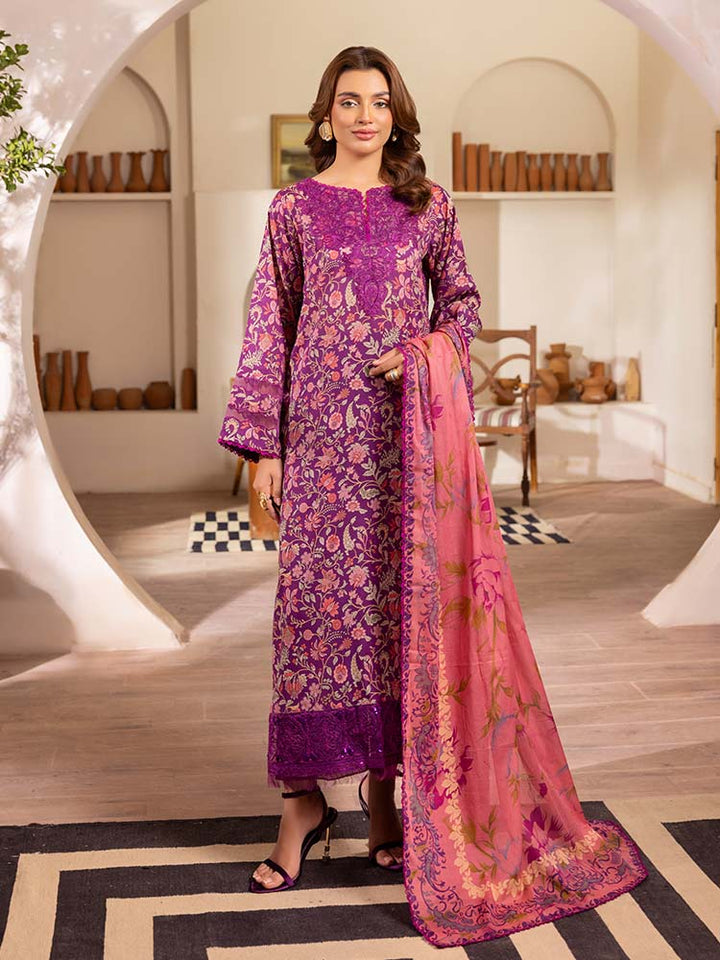 Enhance your wardrobe with the CRIMSAL 3-Piece Unstitched Digital Printed Lawn Suite, featuring a stunning blend of digital prints and exquisite embellishments. Perfect for festive occasions, weddings, or casual gatherings, this suit set offers unmatched elegance and comfort.