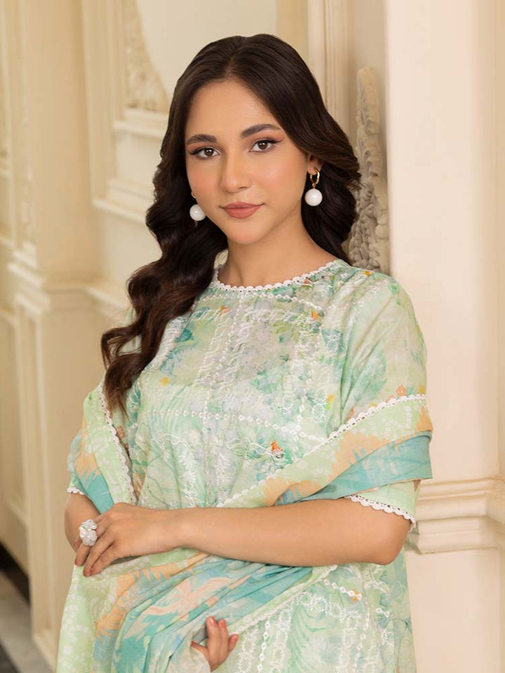 Embrace timeless elegance with our DOVES OF GARDEN 3-piece lawn suit, featuring exquisite digital prints enhanced with delicate embroidery. This premium ensemble combines contemporary design with traditional craftsmanship for a sophisticated summer look.
