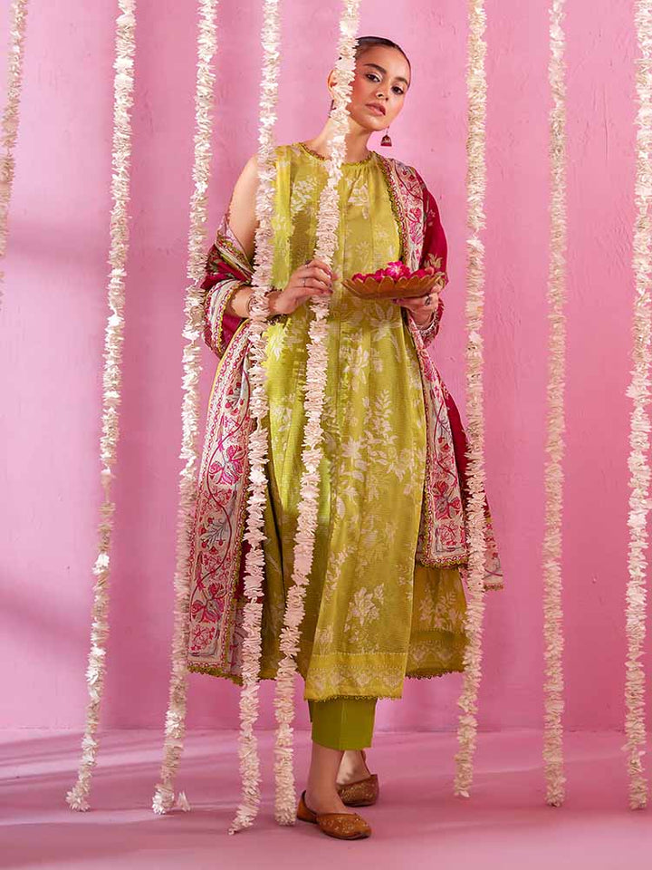 Bloom with elegance in our GULAB RANG 3-piece unstitched lawn suit, featuring exquisite digital prints on premium fabrics. This luxurious ensemble includes a vibrant Bana Dora printed lawn shirtsoft dyed cambric cotton trousers, and a flowy pure lawn dupatta – perfect for summer weddings, festive occasions, or elegant everyday wear.