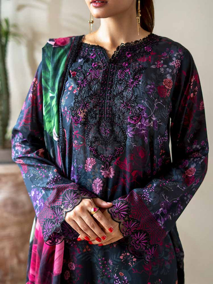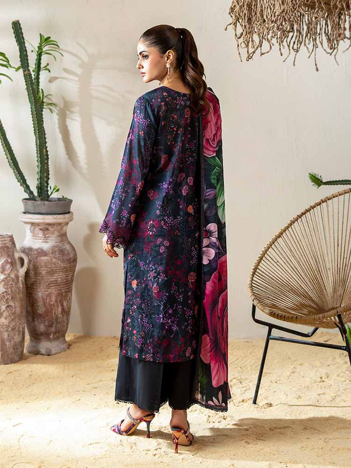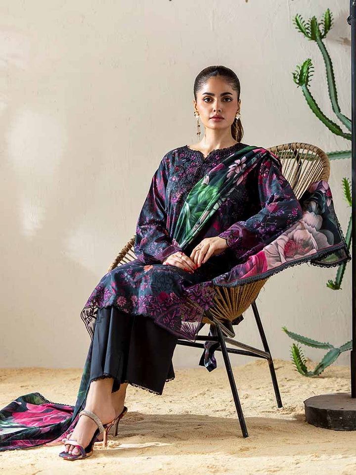 Upgrade your wardrobe with the NOER 3-Piece Unstitched Digital Printed Lawn Suit, a perfect blend of elegance and comfort. This exquisite ensemble includes a shirt, trouser, and dupatta, crafted from premium fabrics for a luxurious feel..