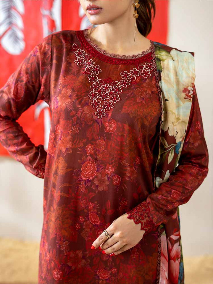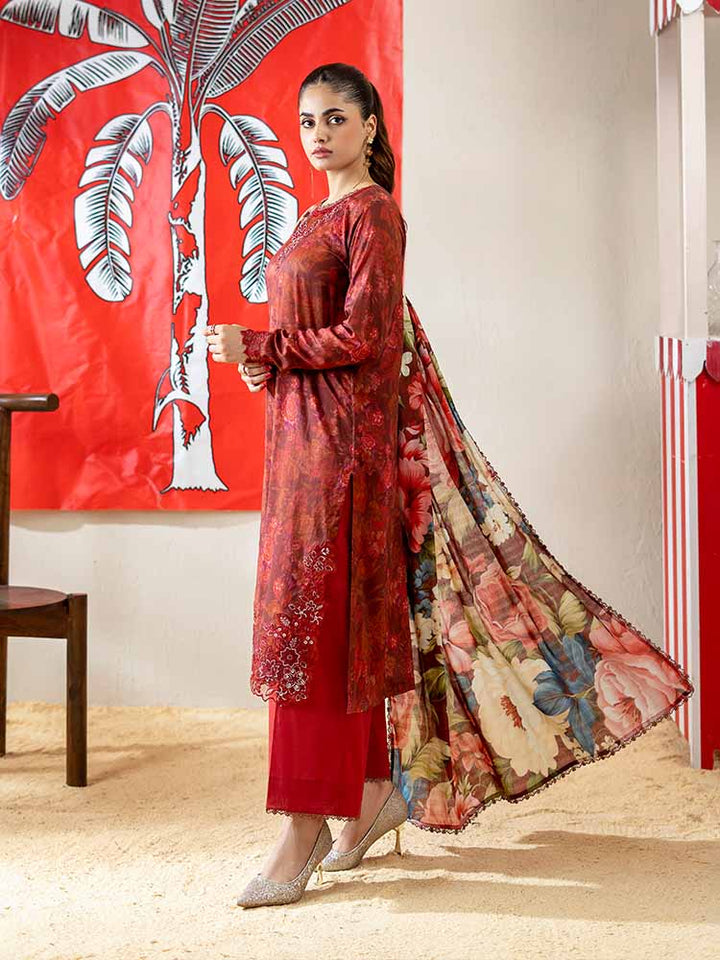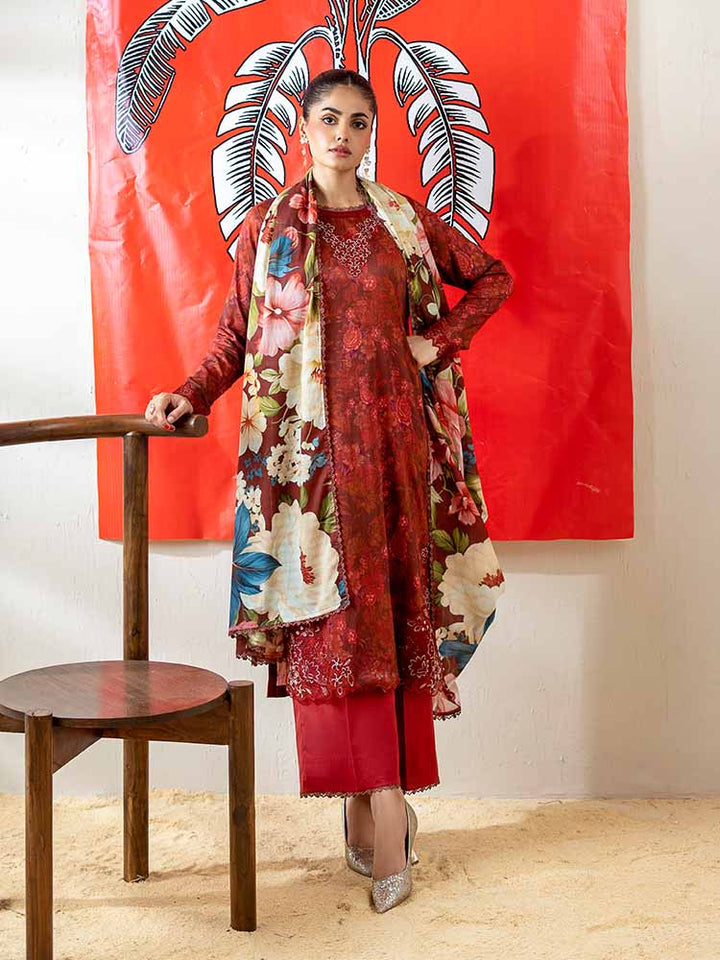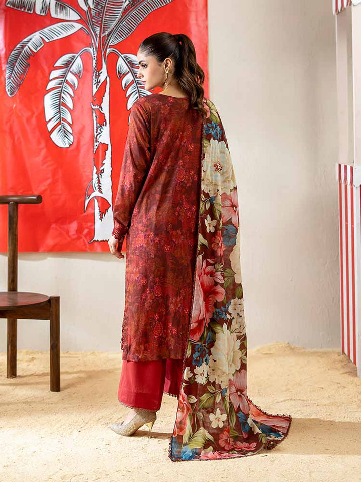 Upgrade your wardrobe with the NOER 3-Piece Unstitched Digital Printed Lawn Suit, a perfect blend of elegance and comfort. This exquisite ensemble includes a shirt, trouser, and dupatta, crafted from premium fabrics for a luxurious feel..