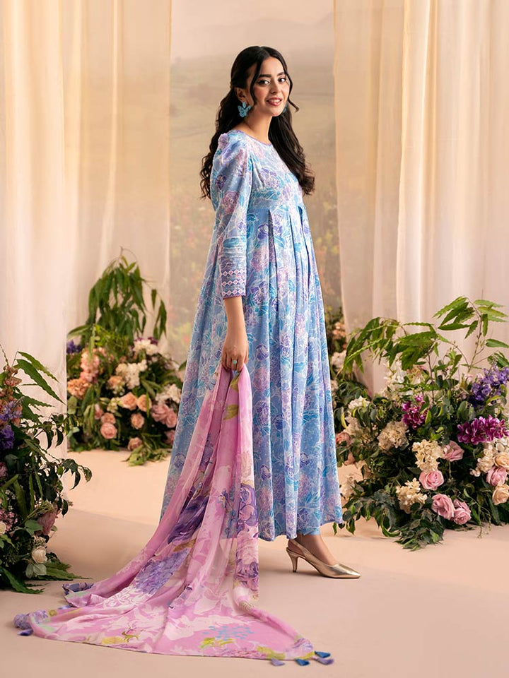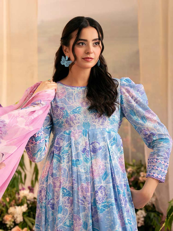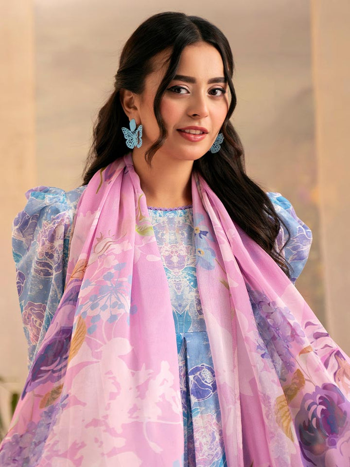 Add fresh floral charm to your wardrobe with PEACH POPPIES, a 3-piece unstitched lawn suit featuring a digital printed shirt (front, back & sleeves), dyed cambric trouser, and a flowy digital printed bamber chiffon dupatta. Perfect for summer casuals and light gatherings