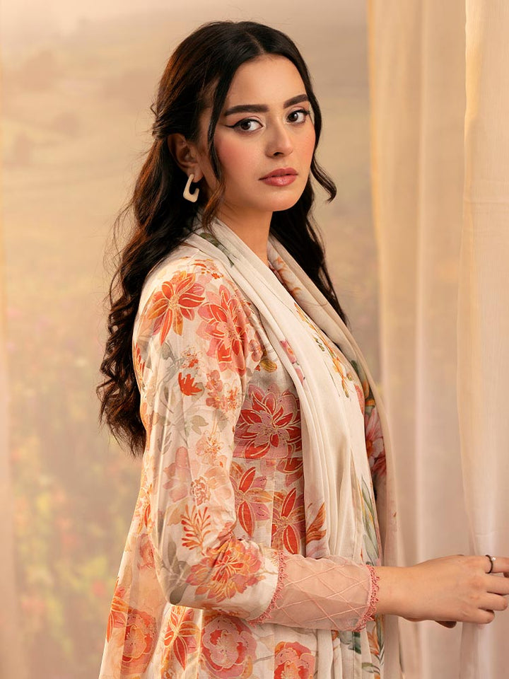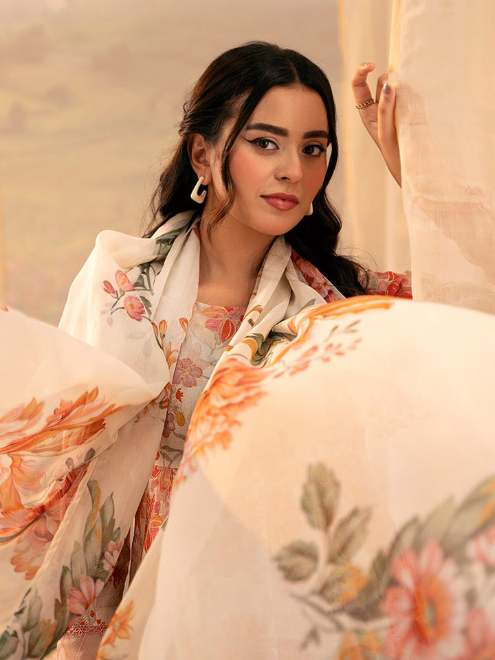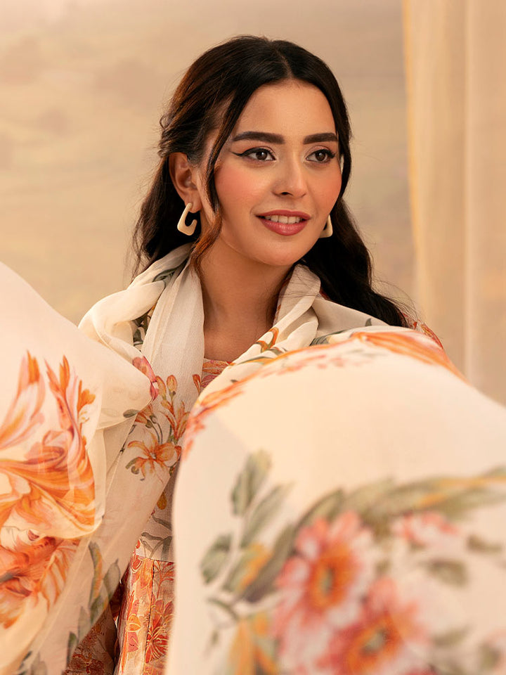PEACH POPPIES3-Piece Unstitched Digital Printed Lawn Suit