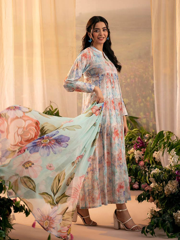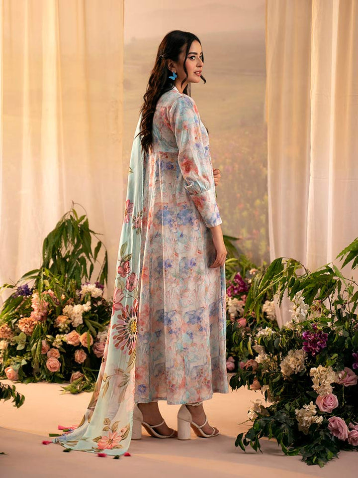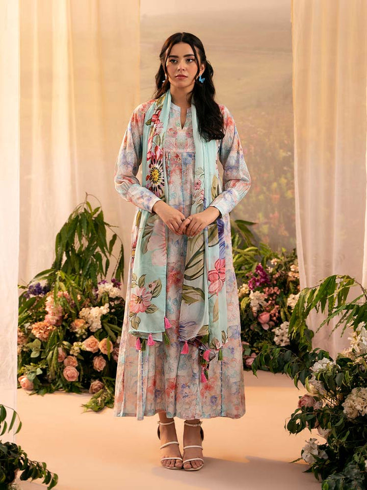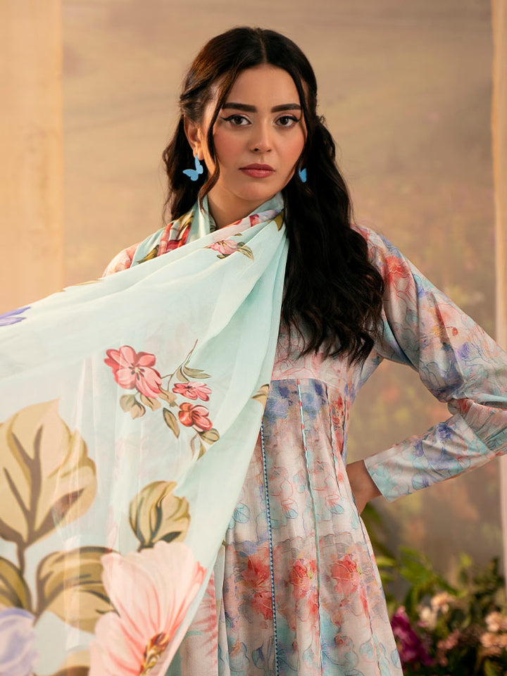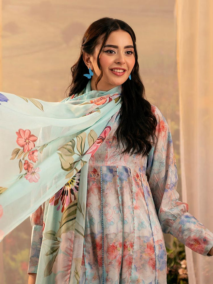 Add fresh floral charm to your wardrobe with PEACH POPPIES, a 3-piece unstitched lawn suit featuring a digital printed shirt (front, back & sleeves), dyed cambric trouser, and a flowy digital printed bamber chiffon dupatta. Perfect for summer casuals and light gatherings