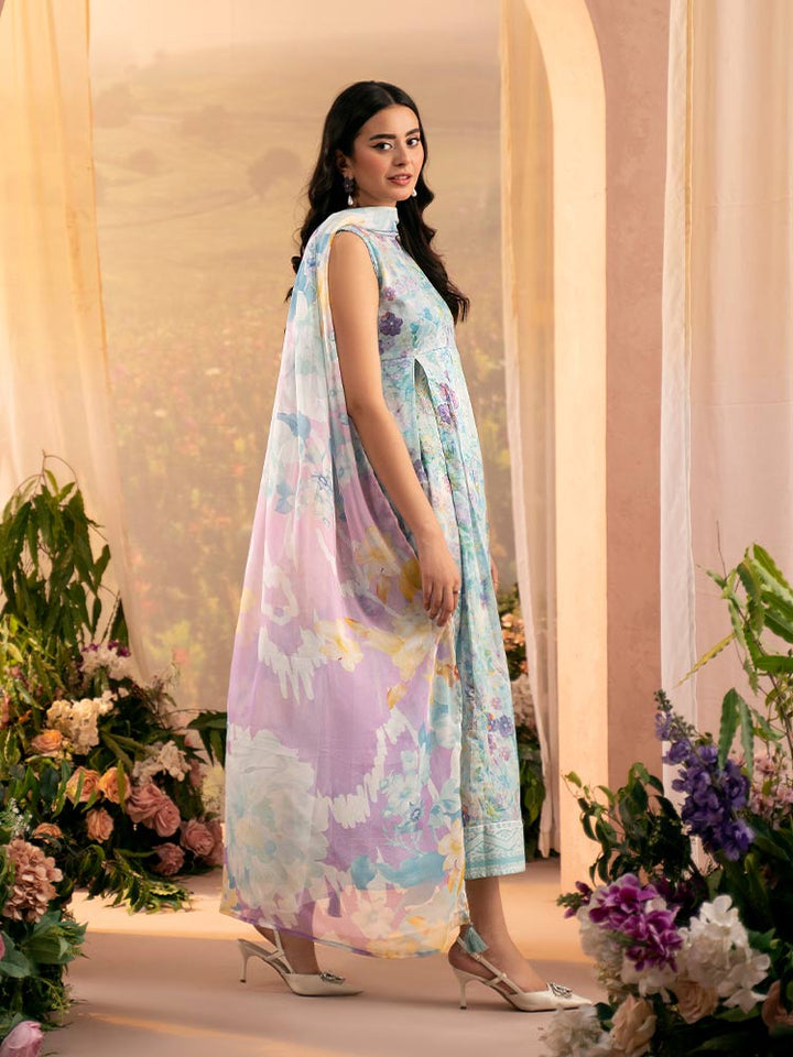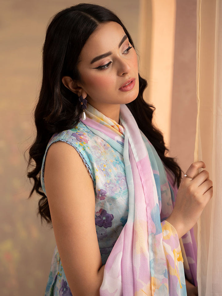 Add fresh floral charm to your wardrobe with PEACH POPPIES, a 3-piece unstitched lawn suit featuring a digital printed shirt (front, back & sleeves), dyed cambric trouser, and a flowy digital printed bamber chiffon dupatta. Perfect for summer casuals and light gatherings