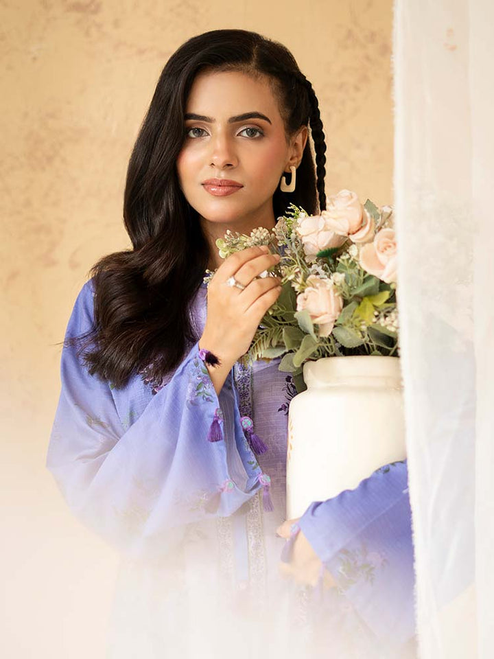 Step into a world of effortless grace and modern charm with the SANAZ 2-Piece Unstitched Digital Printed Lawn Suit. This stunning ensemble is crafted from premium, breathable lawn fabric, adorned with a captivating all-over digital print that exudes contemporary elegance. The intricate design, printed on luxurious Linen Bana Dora fabric, ensures you make a memorable impression at any spring or summer event.