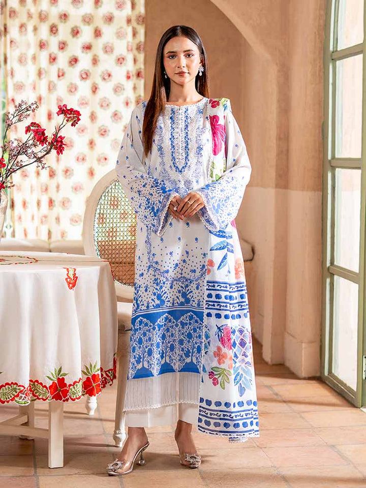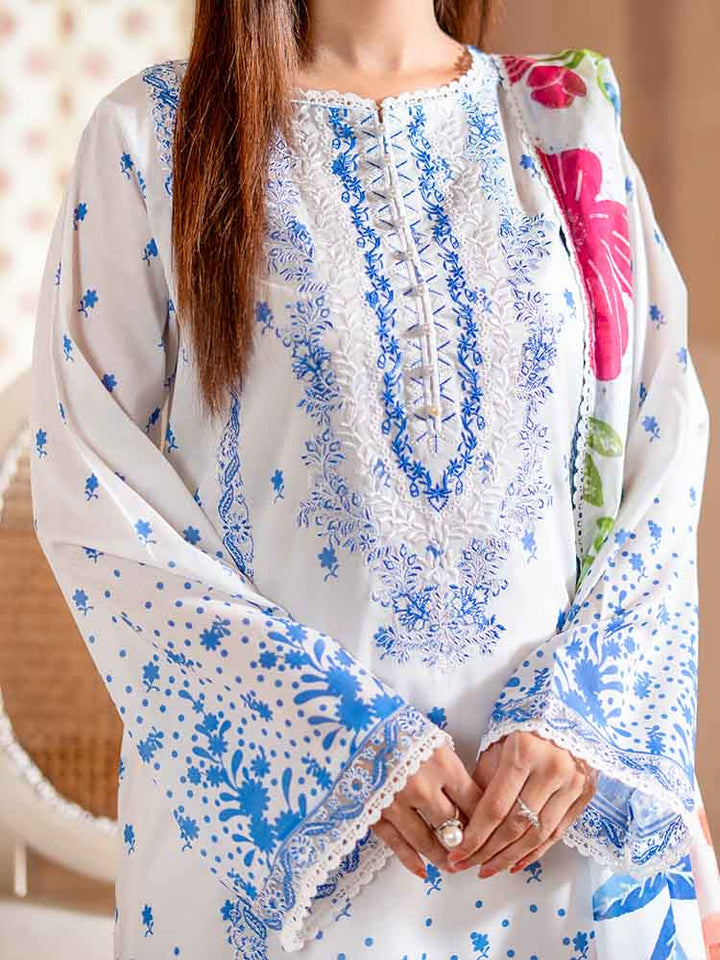 Elevate your summer wardrobe with the SERAI 3-piece unstitched lawn suit, blending exquisite digital prints with delicate embroidery for a luxurious look. This premium ensemble features: