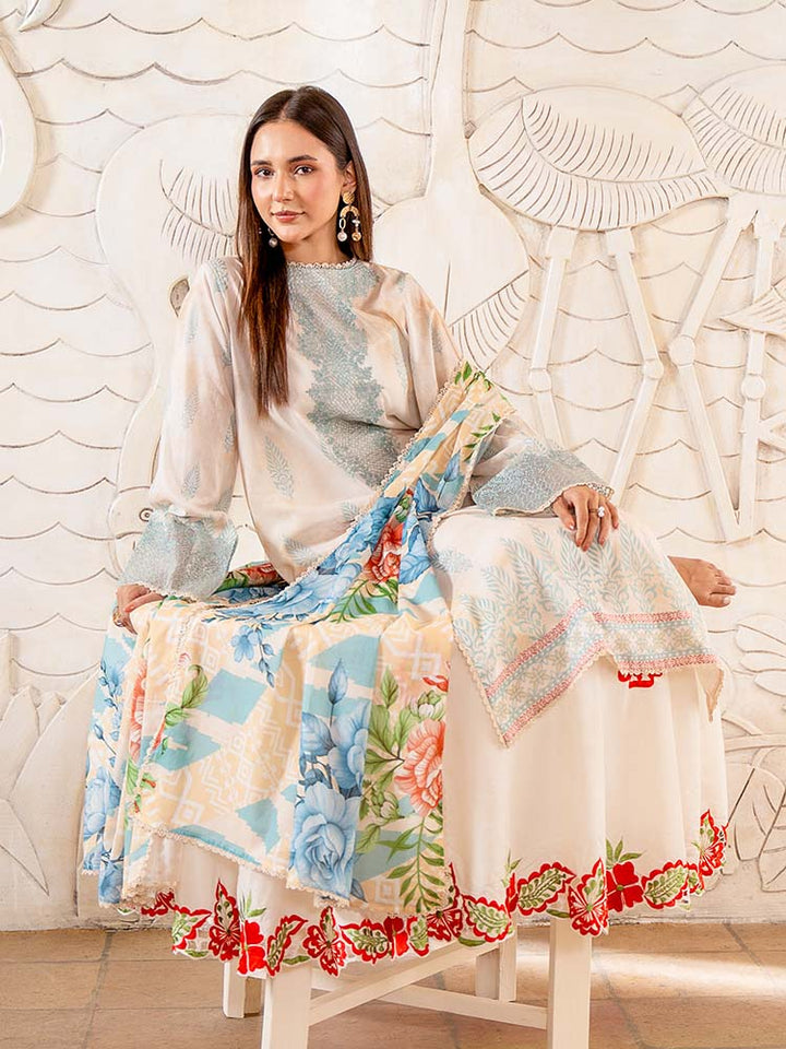 Elevate your summer wardrobe with the SERAI 3-piece unstitched lawn suit, blending exquisite digital prints with delicate embroidery for a luxurious look. This premium ensemble features: