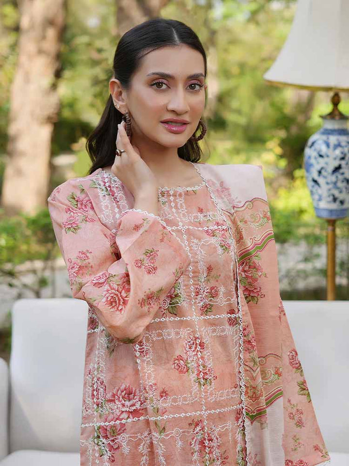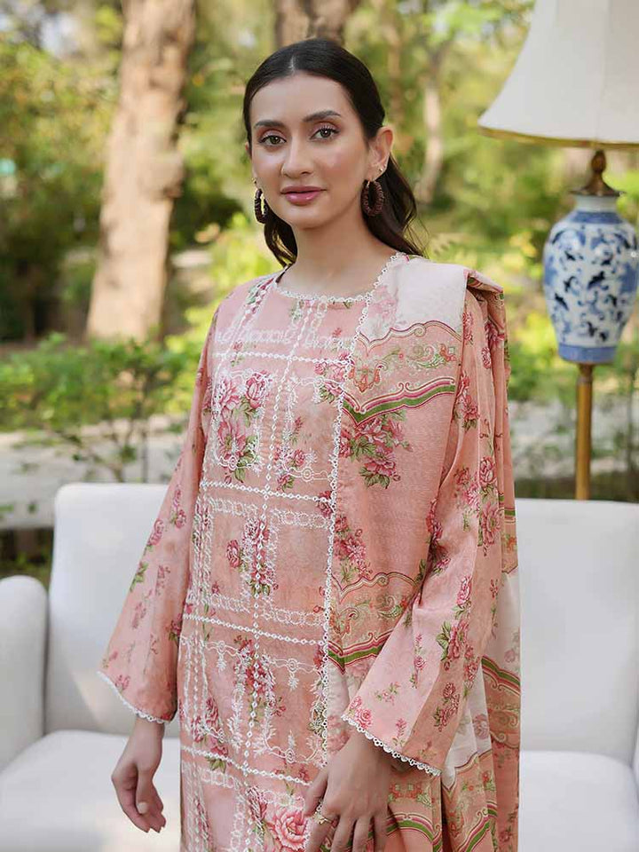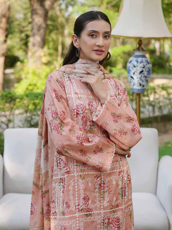 Shine bright in the TWINKLING 3-piece unstitched lawn suit, a perfect blend of contemporary style and traditional craftsmanship. This stunning ensemble features a digital printed lawn shirt with exquisite embroiderycomfortable dyed cambric cotton trousers, and a vibrant Bana Dora printed lawn dupatta – making it ideal for festive occasions, weddings, or elegant summer outings.