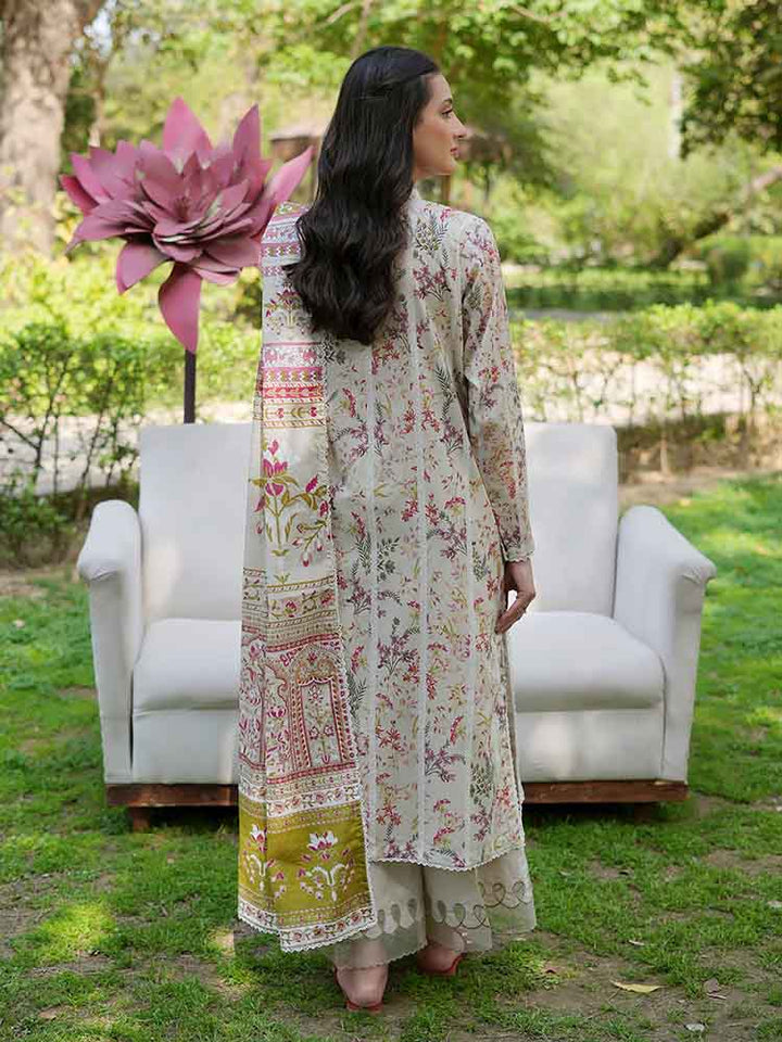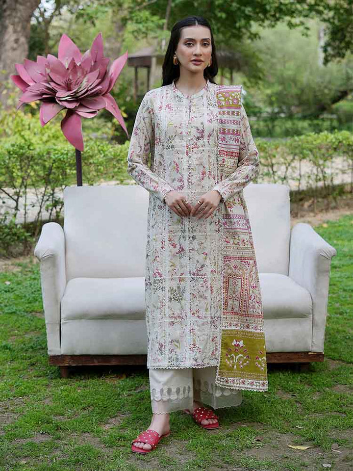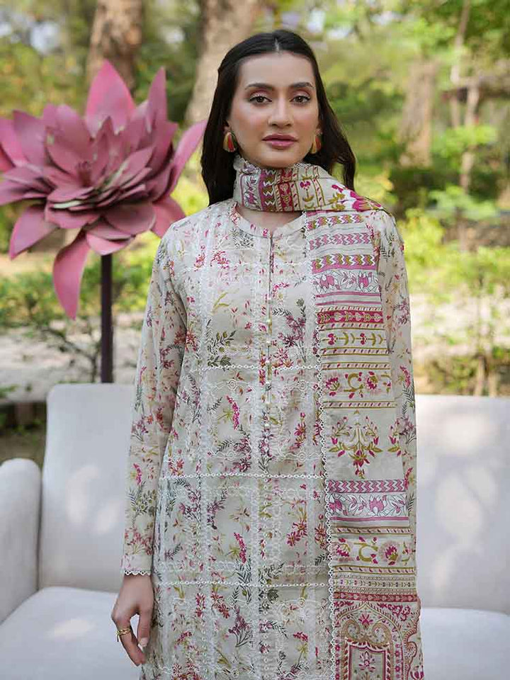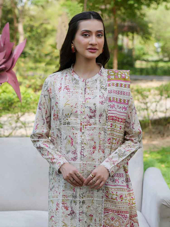 Shine bright in the TWINKLING 3-piece unstitched lawn suit, a perfect blend of contemporary style and traditional craftsmanship. This stunning ensemble features a digital printed lawn shirt with exquisite embroiderycomfortable dyed cambric cotton trousers, and a vibrant Bana Dora printed lawn dupatta – making it ideal for festive occasions, weddings, or elegant summer outings.