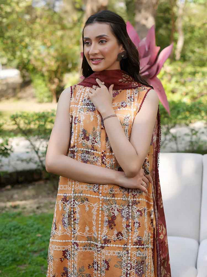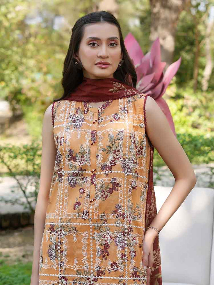 Shine bright in the TWINKLING 3-piece unstitched lawn suit, a perfect blend of contemporary style and traditional craftsmanship. This stunning ensemble features a digital printed lawn shirt with exquisite embroiderycomfortable dyed cambric cotton trousers, and a vibrant Bana Dora printed lawn dupatta – making it ideal for festive occasions, weddings, or elegant summer outings.