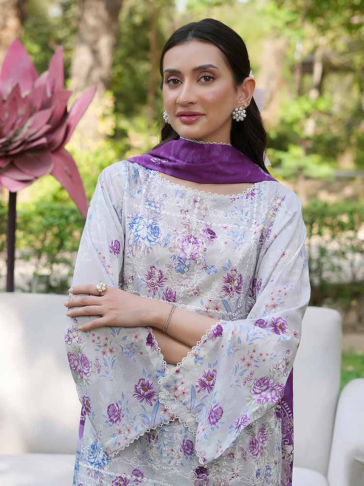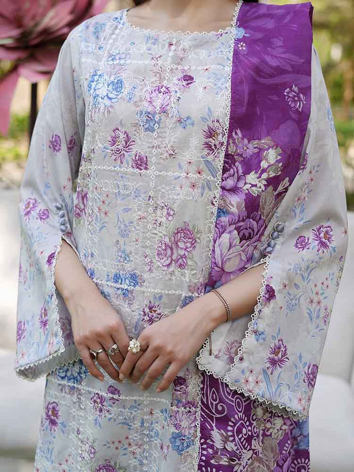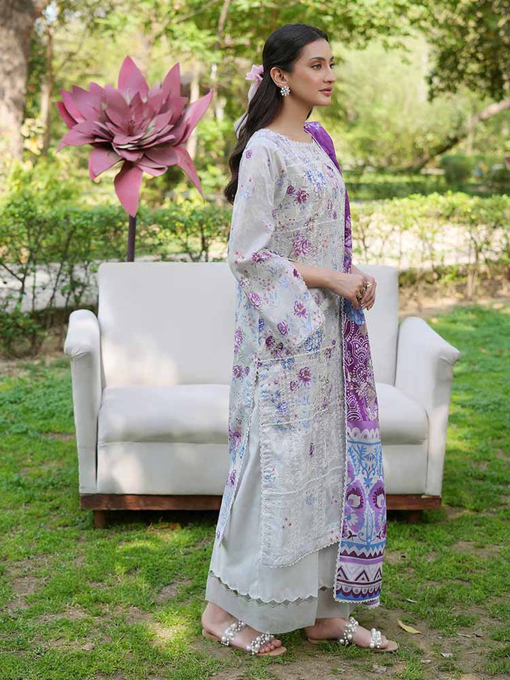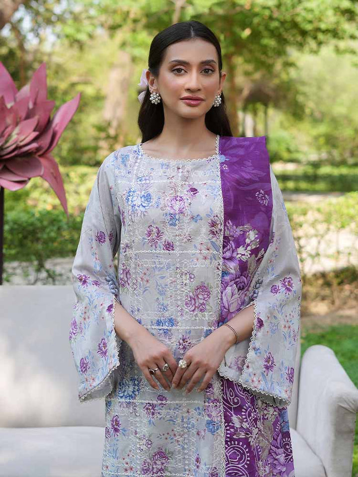 Shine bright in the TWINKLING 3-piece unstitched lawn suit, a perfect blend of contemporary style and traditional craftsmanship. This stunning ensemble features a digital printed lawn shirt with exquisite embroiderycomfortable dyed cambric cotton trousers, and a vibrant Bana Dora printed lawn dupatta – making it ideal for festive occasions, weddings, or elegant summer outings.